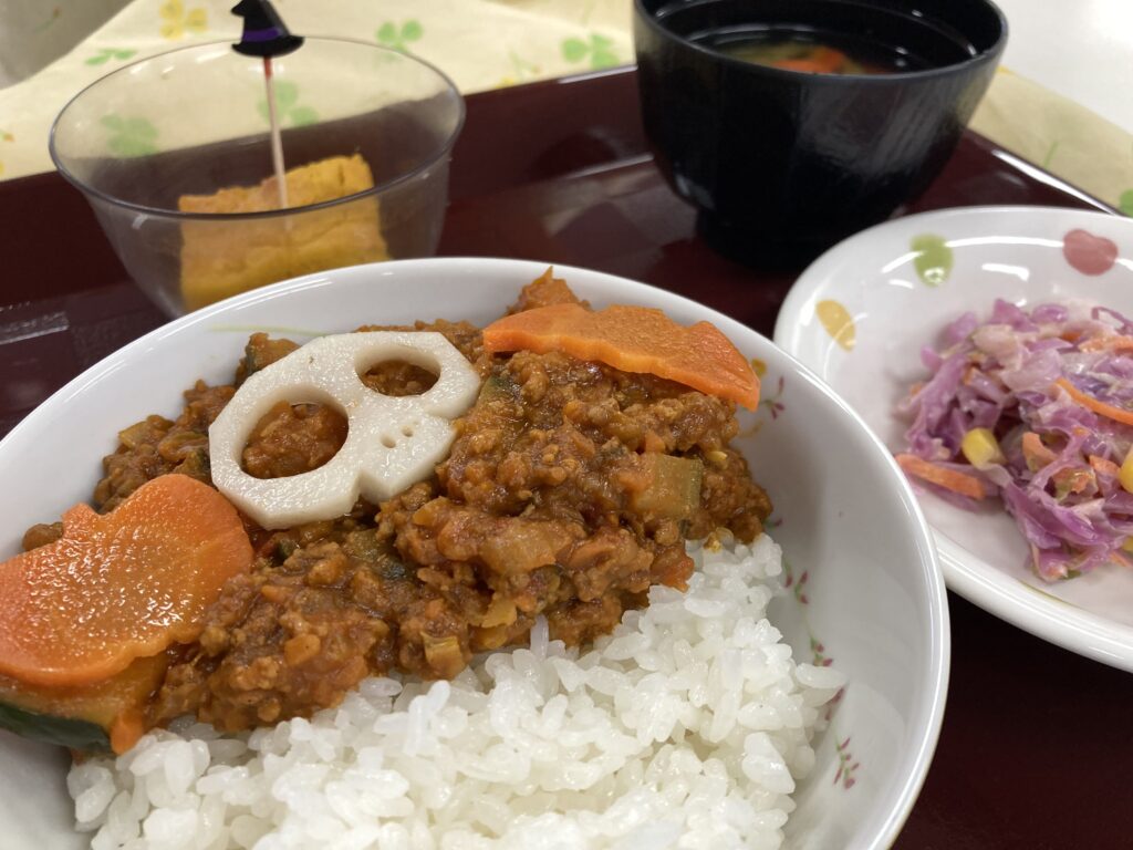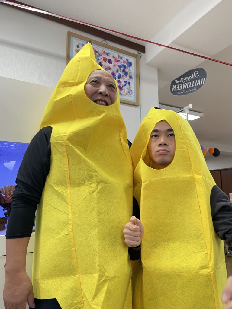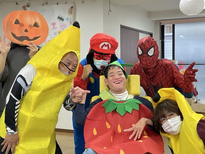 10月 「ハロウィン」 2025年11月30日 10月はハロウィン!ということで、みんなで仮装をして楽しみました。 バナナやイチゴを始め、様々な衣装が並び利用者さんの色々な表情がみられました。 昼食も特別メニューで、普段とは違う雰囲気をみんなで楽しむことが出来ました。