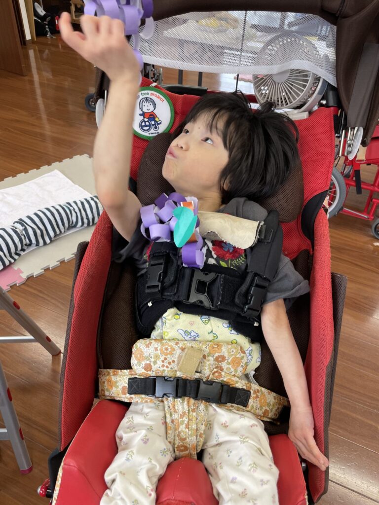 天井からぶら下げた手作りぶどうに一生懸命手を伸ばして取りました。